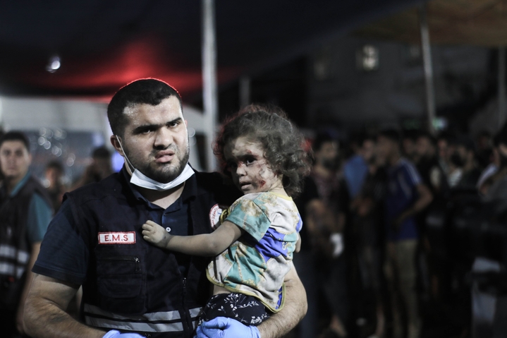 当地时间2023年10月29日,加沙地带,当地遭以色列袭击后,受伤的儿童被送往医院治疗。ic photo 图